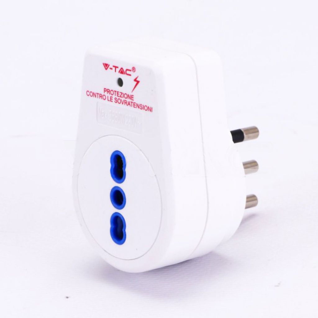 Adattatore presa Italiana 1 via 10/16A con protezione contro le sovratensioni con spina Italiana da 16A