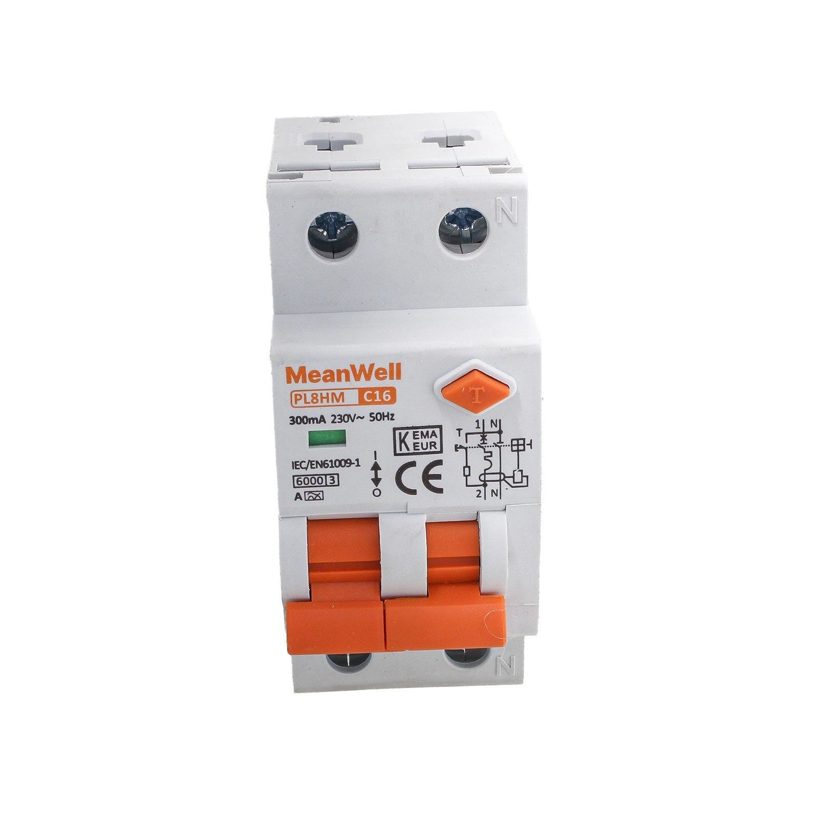 Interruttore Magnetotermico Differenziale Doppia Leva Tipo A Curva C 1P+N 2M 6kA 300mA C16A AC 230V IP20 IEC61009-1